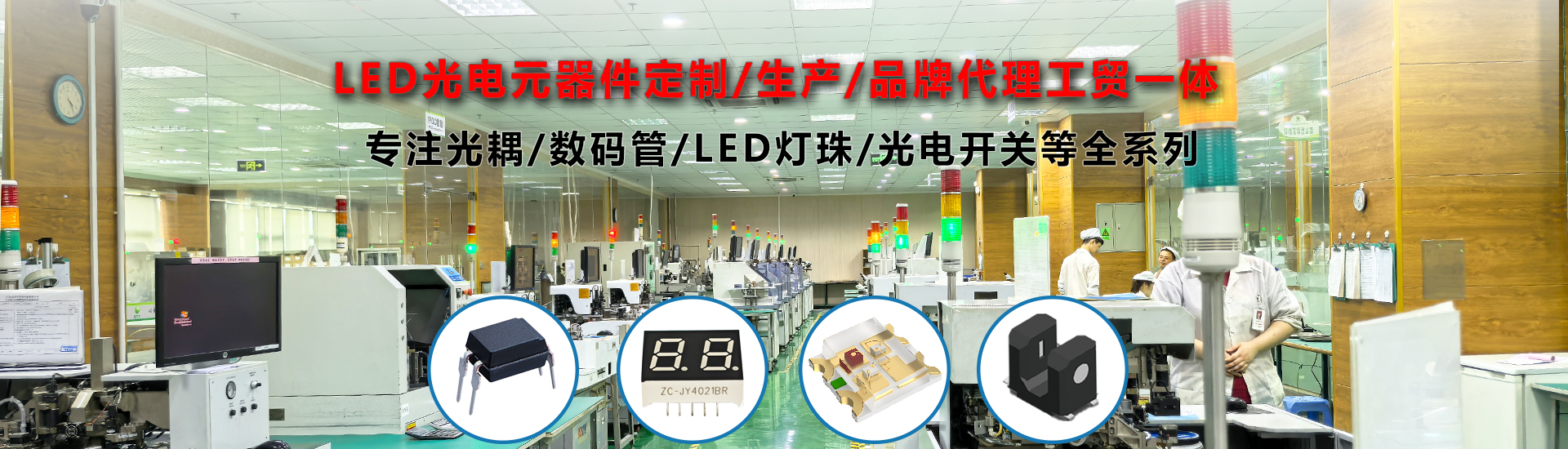 主營LED燈珠、數碼管、光耦、光電開關、紅外對管等產品